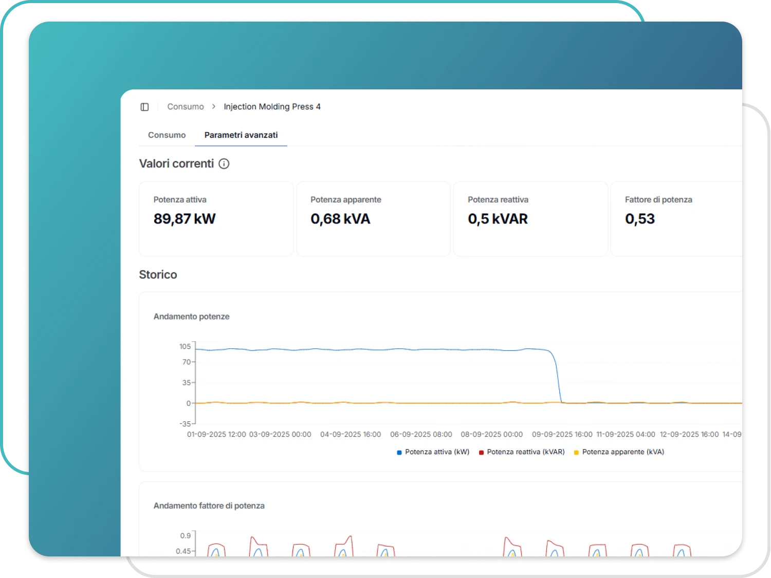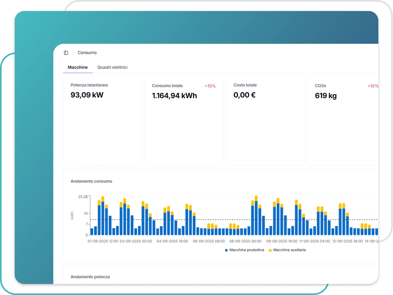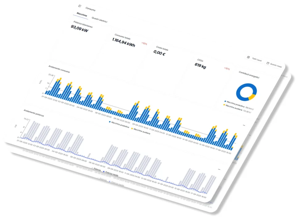 Energy Monitoring is the app that lets you visualize in real time how energy flows through your factory processes. Track consumption, costs, energy distribution, and CO₂e emissions simply, reliably, and with immediate operational impact.