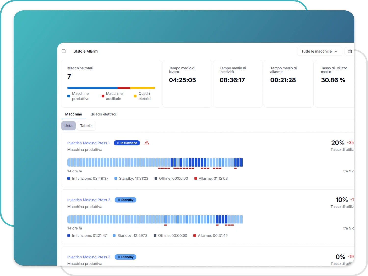 Monitor machine status and alarms to act quickly, ensuring production continuity.