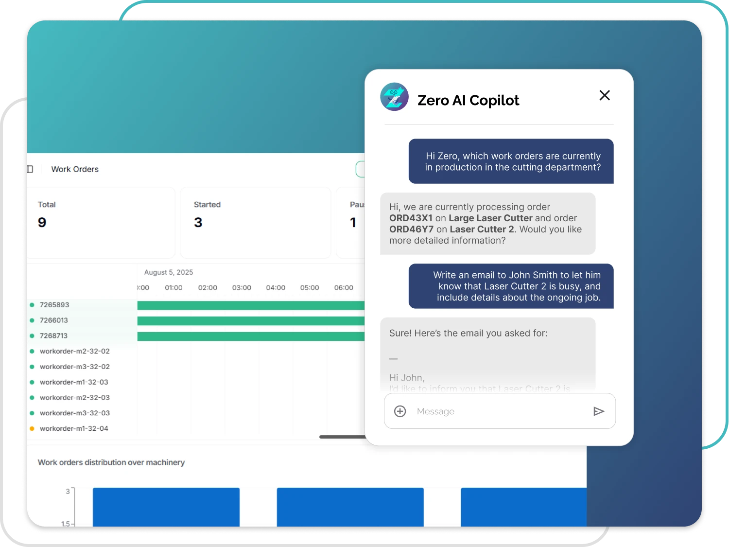 This is where the AI Copilot becomes a true decision-making ally—mapping processes, integrating systems (MES, ERP, etc.), and supporting advanced work order management so you can act quickly and effectively.